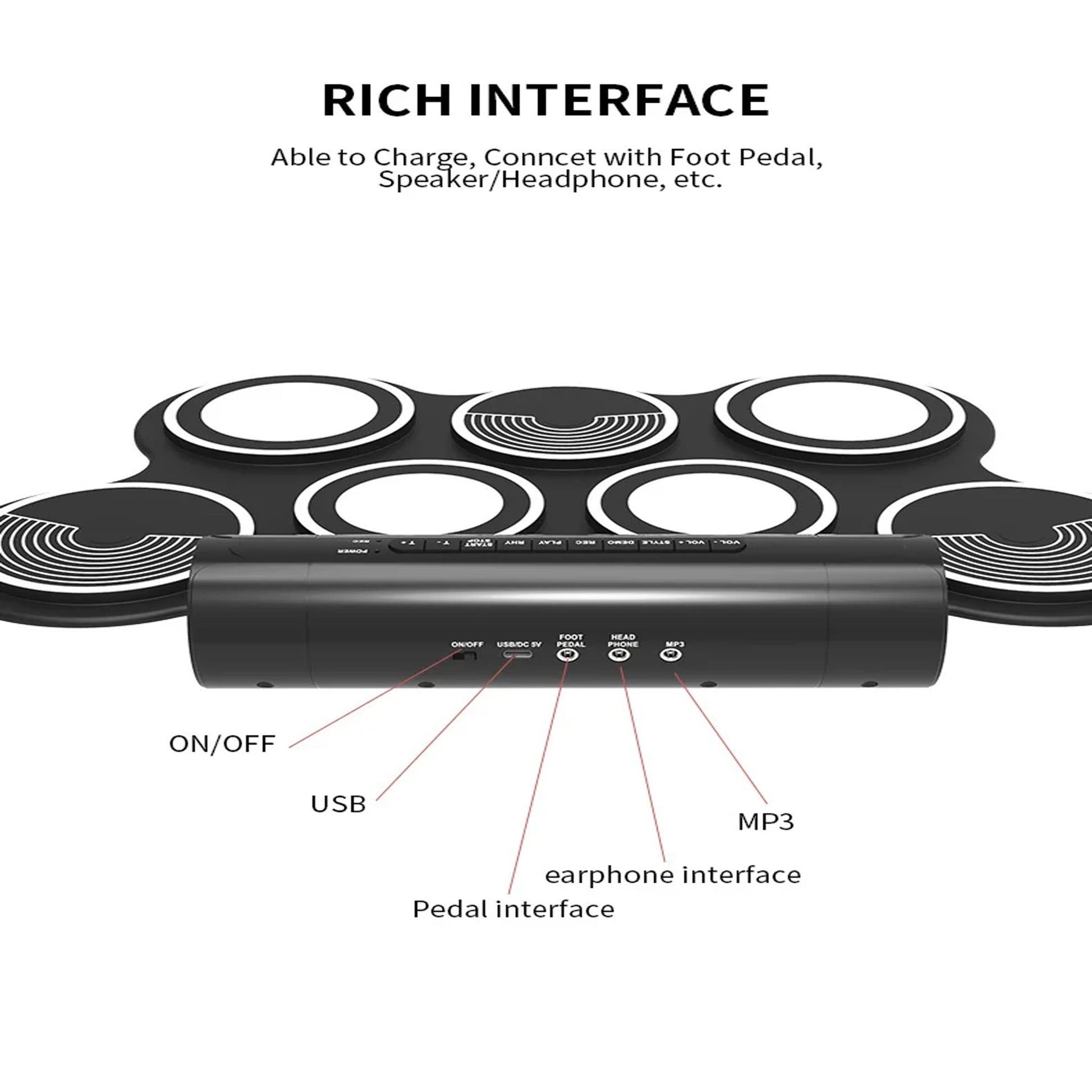 6. Connectivity Options for Seamless Integration: The electric drum pad offers various connectivity options, allowing seamless integration with other musical instruments, recording equipment, and sound systems for a complete musical setup.