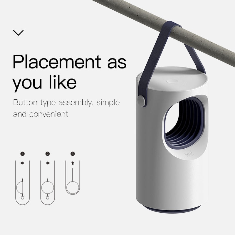 Equipped with a powerful yet quiet fan, the lamp effectively pulls insects into a secure, enclosed chamber where they dehydrate and die, offering a chemical-free, safe solution for mosquito control.